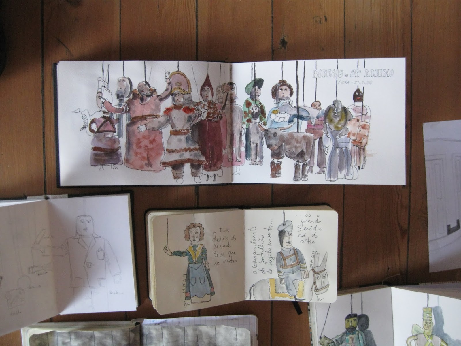 E foi assim, veio o Padre Chanca, veio o Mestre Sala, os Cágados, o Adão, a Eva, os Reis Magos, o Guarda Fiscal, os que trabalhavam no campo, os que trabalhavam na cidade e os que faziam coisa nenhuma, vieram os EvoraSketchers, vieram Sketchers de outras bandas, vieram os que já tinham desenhado e os que há muito não se lembravam que o faziam. Uns aprumaram-se e foram para o palco, outros ficaram a ver a banda passar, houve ainda quem fosse apanhado na teia, foram muitos os que compareceram, uns de carne e osso, outros de madeira e cortiça mas, estavam lá todos e foi muuuuuuuiiiitoooo bom.